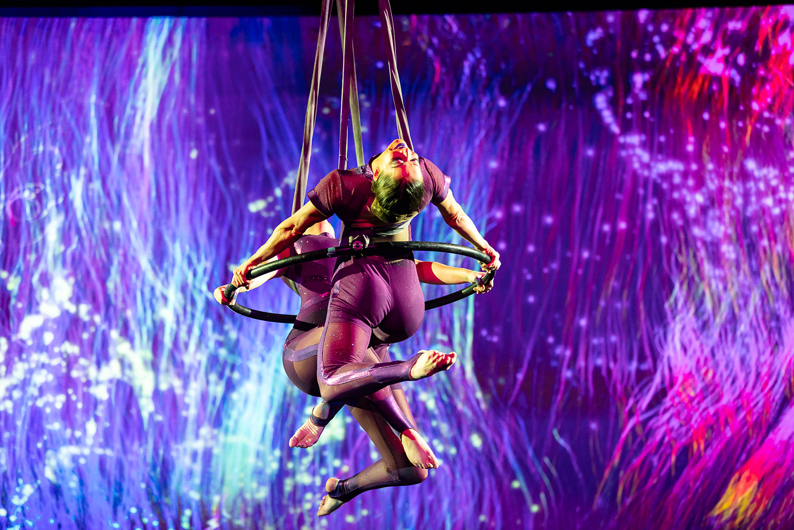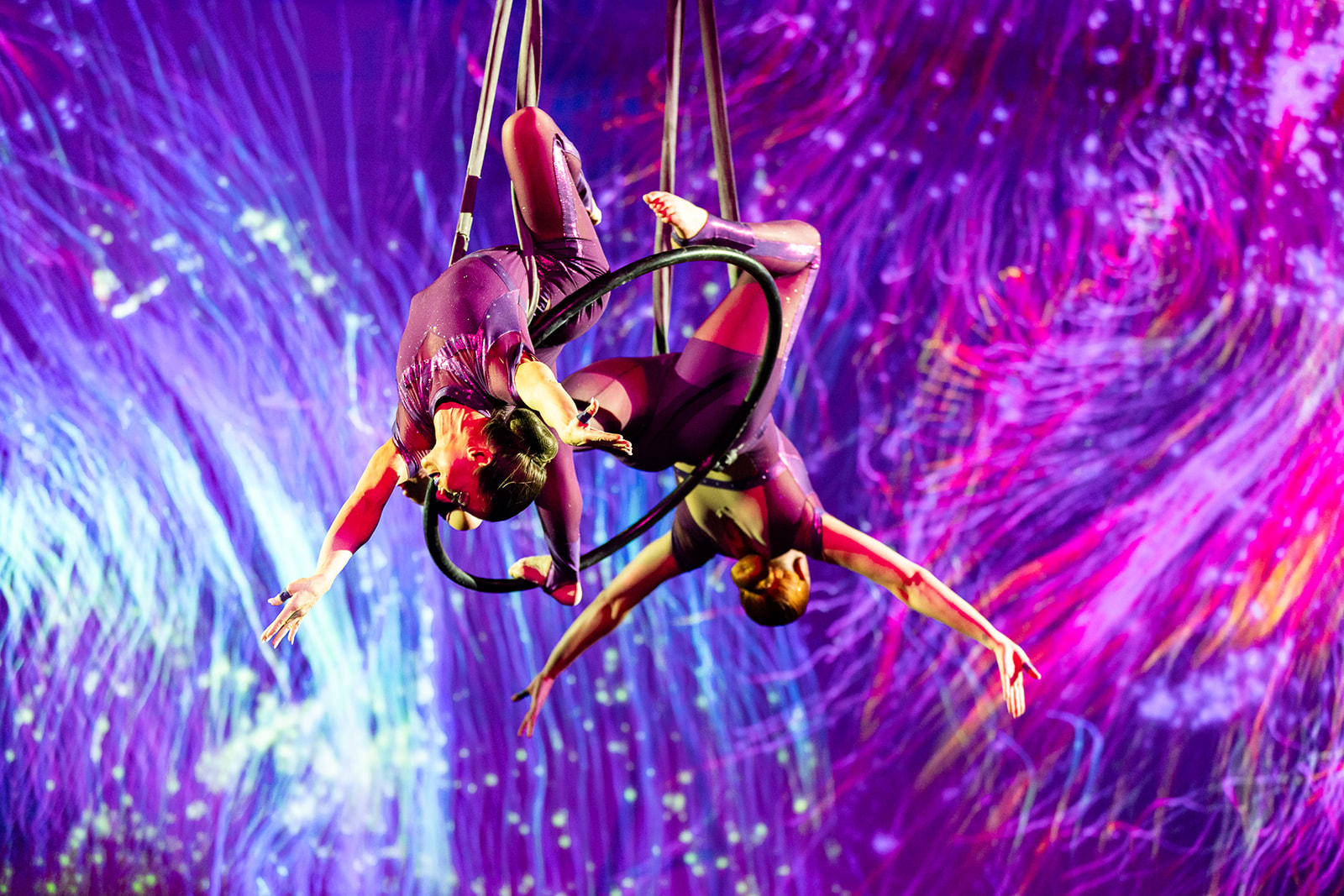 The tippy hoop, a captivating duo apparatus', brings a unique blend of power and excitement to cirque-style performances. This innovative piece of equipment features a large hoop that tips and spins, creating a mesmerizing visual effect as the performers execute their routines. With precision, the duo navigates the shifting angles of the hoop, synchronizing their movements to maintain balance while performing intricate tricks and spins. The tippy hoop's dynamic motion adds an element of unpredictability and thrill, captivating audiences with its fluid transitions and the performers' seamless coordination. This act combines strength, agility, and hard-hitting movements, making it a standout feature in any cirque production, leaving spectators in awe of the performers' skill and creativity.