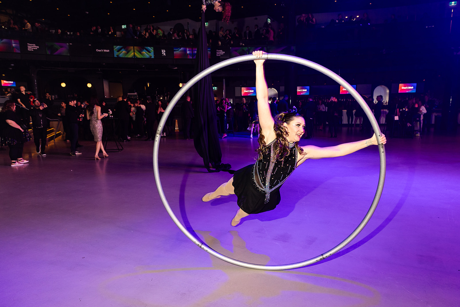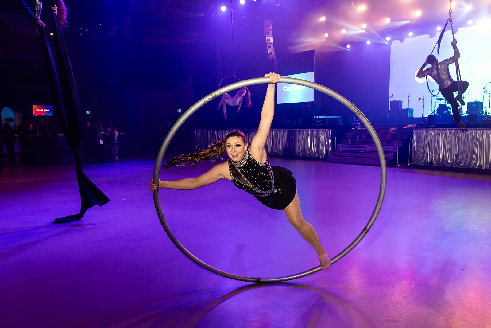 The Cyr Wheel is a fast-moving, exhilarating circus ground apparatus that brings an electrifying energy to any performance